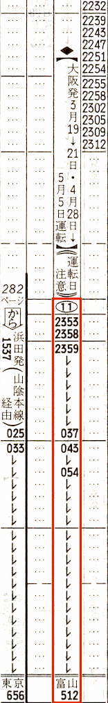 そして東京〜浜田・出雲市2往復、上野〜金沢(上越線経由)1往復も設定されています。