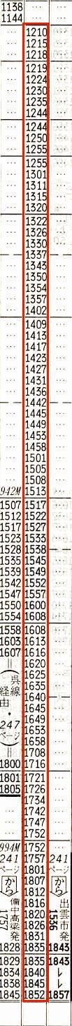 [サンライズ出雲]4031M:東京2150→2214横浜2215→0018静岡0020→0525姫路0526→0627☆岡山0634→0743新見0744→0903米子0905→0958出雲市[12時間08分]