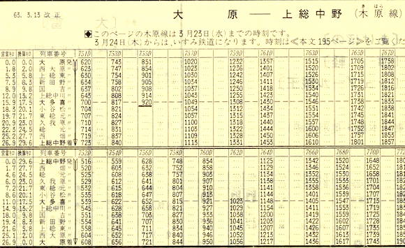 JR木原線は3月24日からいすみ鉄道になります。木原線では大原→上総中野11本、上総中野→大原12本、大原〜大多喜1往復でした。