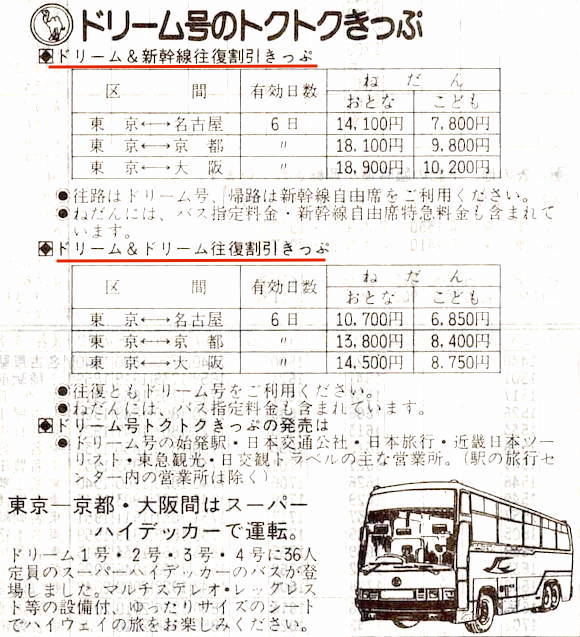往路はドリーム号、帰路は新幹線自由席利用のドリーム&新幹線往復割引きっぷや、往復ともドリーム号のドリーム&ドリーム往復割引きっぷも発売されています。