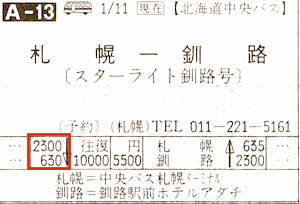 【スターライト釧路号】札幌:中央バス札幌ターミナル2300→0630釧路駅【7時間30分】北海道中央バス