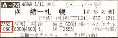 一方、オーロラ号の所要時間は6時間35分で朝6時30分に札幌に到着します。