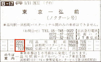 【ノクターン号】品川駅2200→0715弘前バスターミナル【9時間15分】京浜急行電鉄・弘南バス・JTB弘前