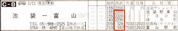【池袋ー富山】池袋駅2205→0530富山駅【7時間25分】西武バス・富山地方鉄道