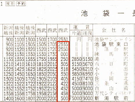 【池袋ー新潟】池袋駅2335→0500新潟駅【5時間25分】西武バス・越後交通・新潟交通新潟