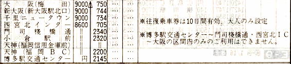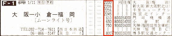 【大阪ー福岡】大阪梅田2200→0630小倉駅前→0800博多駅交通センター【10時間】西日本鉄道・阪急バス