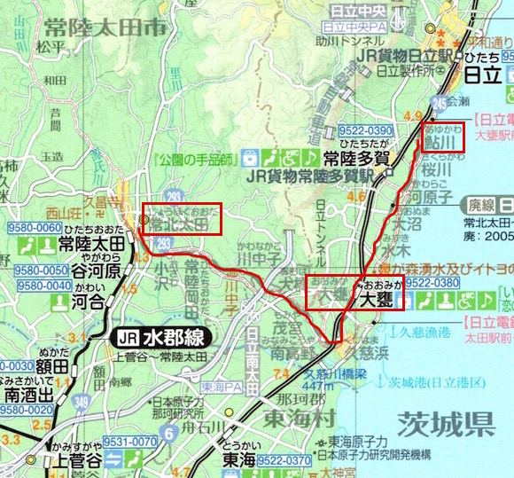 茨城県の鮎川から常北太田までの日立電鉄です。途中の大甕(おおみか)で常磐線と接続しており、常北太田は水郡線常陸太田のすぐそばにあります。29往復の列車があります。しかし2005年に廃止となりました。