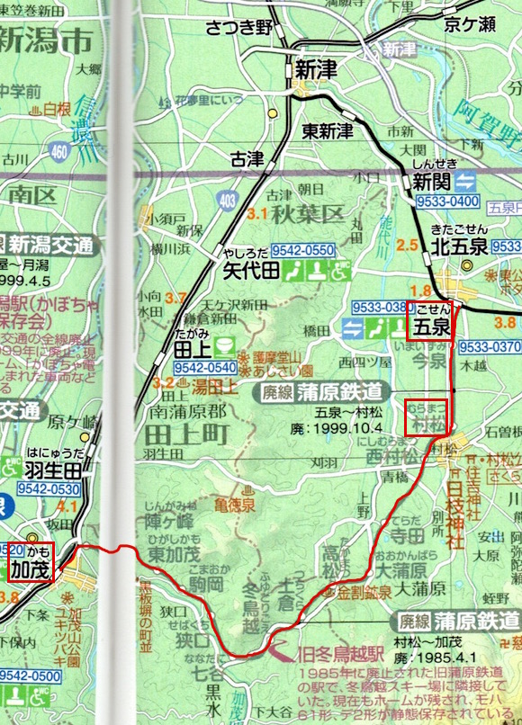 磐越西線の五泉と村松を結ぶ蒲原鉄道です。25往復も列車があります。以前は、信越本線の加茂から村松までも蒲原鉄道が結んでいましたが、こちらは1985年に廃止されました。そして1999年に全線廃止となりました。