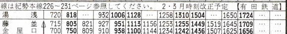 紀勢本線の藤波と金屋口を結ぶ有田鉄道です。7往復の列車があります。そのうち4往復は紀勢本線の湯浅まで乗り入れています。