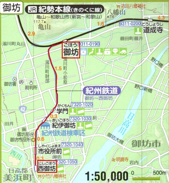 紀勢本線の御坊と日高川を結ぶ紀州鉄道です。御坊〜西御坊19往復、御坊〜日高川4往復の列車があります。御坊市街から離れた紀勢本線の御坊駅と市街とを結ぶ目的で設立されました。1989年に西御坊〜日高川の区間が廃止されました。