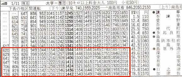 長崎本線の諫早と加津佐を結ぶ島原鉄道です。12往復と区間運転もあるようです。2008年に島原外港(現島原港)〜加津佐の区間が廃止されました。