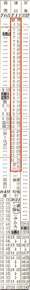 高千穂は、姫路、岡山、福山、尾道、糸崎、広島、横川と7駅に停車し、岩国には3時31分に到着します。