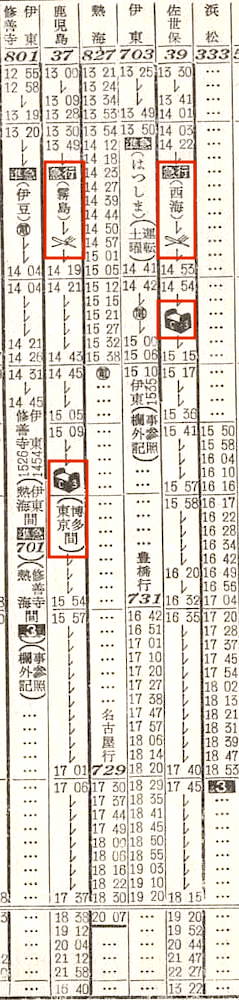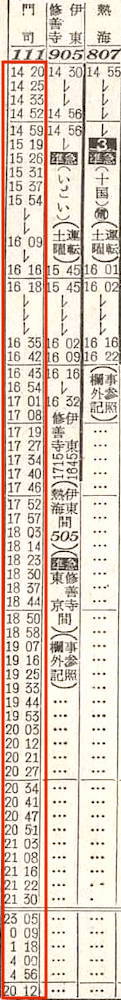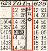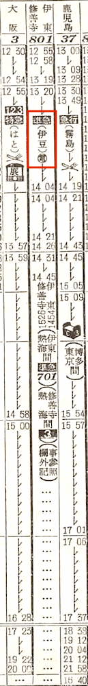 【準急伊豆】801:東京1255-1426熱海☆1428-(701)-1454伊東【1時間59分】