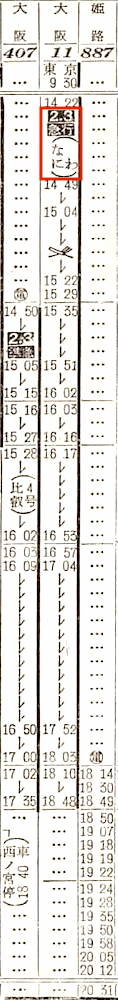 【寝台急行大和】201:東京2245-(東海道本線)-0531名古屋☆0545-(関西本線)-0906湊町【10時間21分】