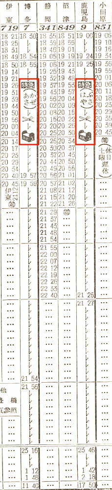 特急つばめには展望車が付いており、東京9時ちょうど発で、横浜、沼津、浜松に停車します。熱海や静岡には停車せず、沼津に停車するとは意外です。