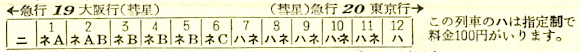 つばめ・はとは12両編成で、東京よりの12号車が展望室付きの1等車(イテ)です。2等車(ロ)5両、3等車(ハ)5両【うち1両は3等荷物合造車(ハニ)】、食堂車(シ)1両となっています。1等展望車に一度乗ってみたいですね。