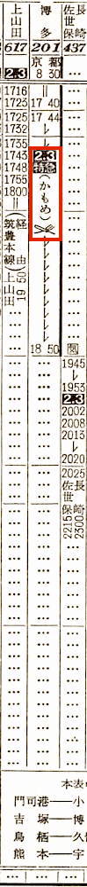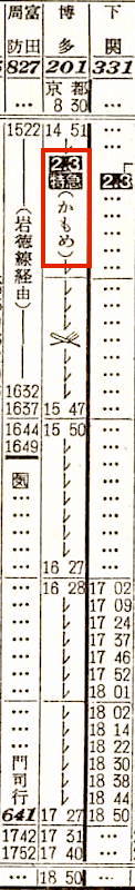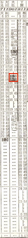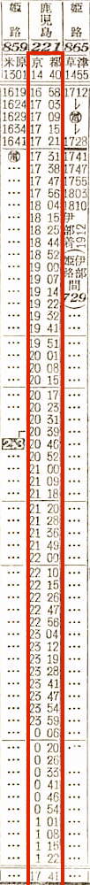 京都発鹿児島行きの夜行普通列車がありました。京都を14時40分に出発し、大阪で14分停車し、加古川には16時56分に到着します。途中、高槻、芦屋、元町には停車しません。