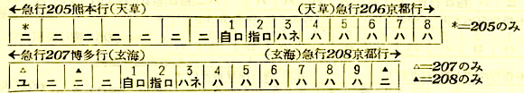 【寝台急行天草】205:京都2021-(東海道本線)-2136神戸2139-(山陽本線)-0729門司0739-(鹿児島本線)-1135熊本【15時間14分】