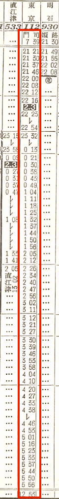 【夜行普通】112:門司0739-(山陽本線)-2212神戸2216-(東海道本線)-1253東京【29時間14分】