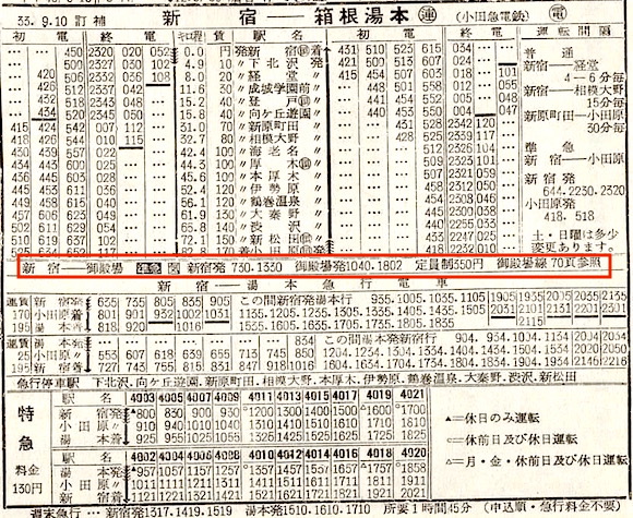 026小田急線・御殿場線:準急銀嶺・準急芙蓉:時刻表見聞録1958年11月号