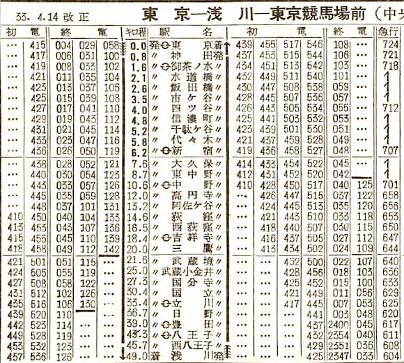 東京-浅川の中央線です。浅川は3年後の1961年(昭和36年)に高尾に改称されました。