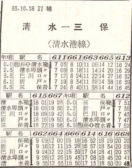 清水-三保の清水港線です。7往復の列車が設定されています。