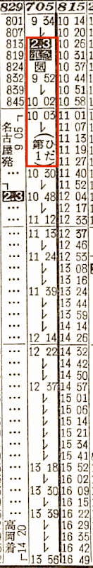 名古屋9時05分発の準急第1ひだは高岡行きです。そして名古屋12時35分発の準急第2ひだは高山行きです。ともに東海道線内は尾張一宮に停車し、岐阜に到着します。