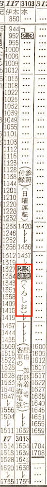 【臨時準急くろしお】3103:白浜口1420-1632東和歌山☆1638-1755天王寺【3時間35分】