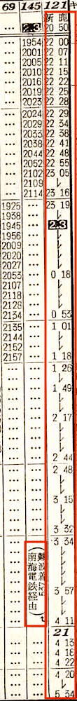 【夜行普通】121:新鹿2050-0411東和歌山☆0413-0422和歌山市0430-(南海電鉄)-0537難波【8時間47分】