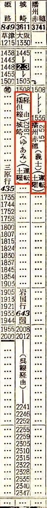 【臨時普通ゆあみ】3611:大阪1330-1503姫路☆1508-(3741)-1536相生-(普通義士:赤穂線)-1552播州赤穂【2時間22分】