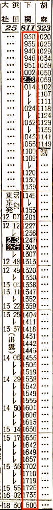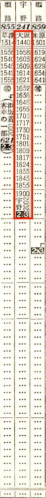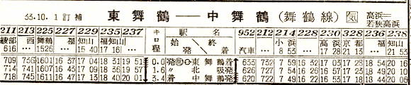 山陰本線の長距離普通列車の数々です。京都9時30分発の下関行きがあります。福知山で26分停車します。東京発浜田行きの寝台急行出雲に先を譲り、山陰本線上り普通列車と行き違い、そして舞鶴線からの普通列車と連絡してから出発するためです。和田山7分停車し、上井には17時33分に到着します。すでに京都から8時間が経過しています。