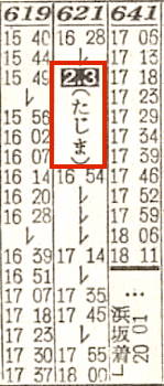 和田山からは山陰本線に入り、終点の城崎には18時02分に到着します。所要時間は4時間32分です。温泉街の駅に到着する時刻としては、少し遅いのかと思いますが、当時は土曜日の午前にも仕事があることが普通でしたから、このような設定になったのでしょうか。日曜日には、逆向きの臨時普通ゆあみがあります。