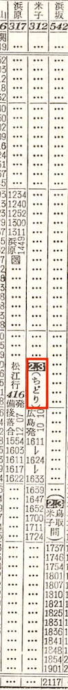 普通夜行ちどり、および普通ちどりは、宍道から山陰本線に入り、終点の米子には普通夜行ちどりは7時02分、普通ちどりは17時24分に到着します。