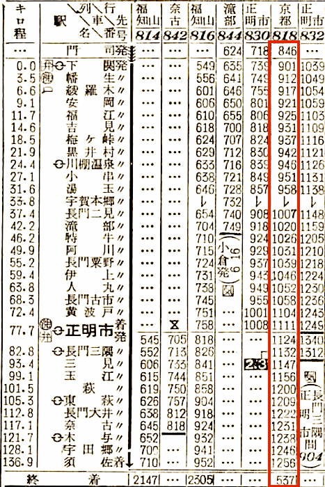 【夜行普通】818:門司0846-0537京都【20時間52分】