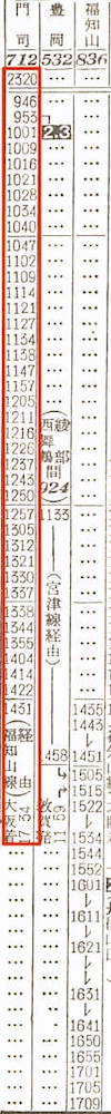 【夜行普通】712:門司2320-(福知山線)-1734大阪【18時間14分】