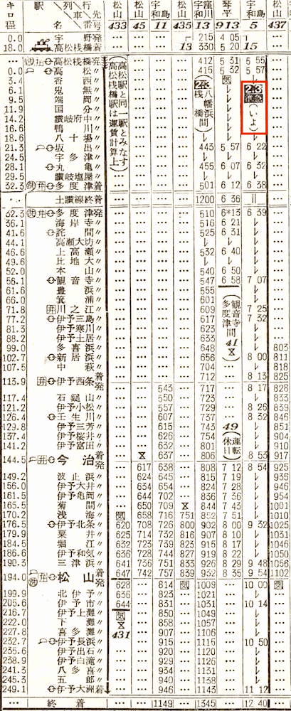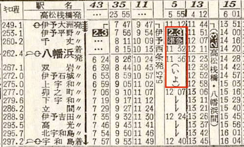 【準急いよ】5:高松桟橋0555-1240宇和島【6時間45分】