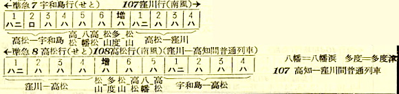 【普通】13:高松桟橋0412-0501多度津☆0510-1345宇和島【9時間33分】