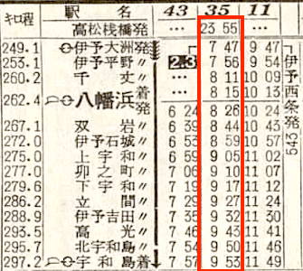 【夜行普通】35:高松桟橋2355-0050多度津☆0100-0953宇和島【9時間58分】