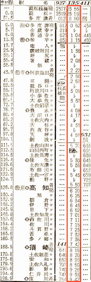 【夜行普通】35:高松桟橋2355-0050多度津☆0052-(135)-0942窪川【9時間47分】