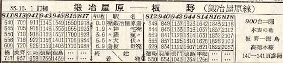 次は高徳本線の板野〜鍛冶屋原の鍛冶屋原線です。こちらもまた盲腸線です。1日7往復の列車が走っており、徳島・鳴門・牟岐などに乗り入れています。1972年(昭和47年)1月16日に廃止されました。