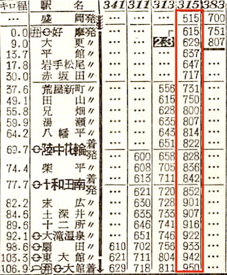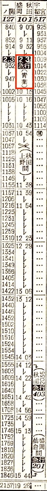【夜行普通】113:上野1240-0445盛岡☆-(315)(花輪線)-0950大館【21時間10分】