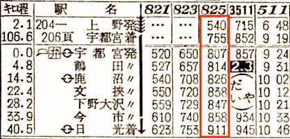 【普通】125:上野0540-0755宇都宮☆0807-(825)(日光線)-0911日光【3時間31分】