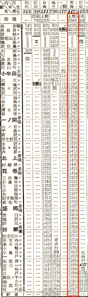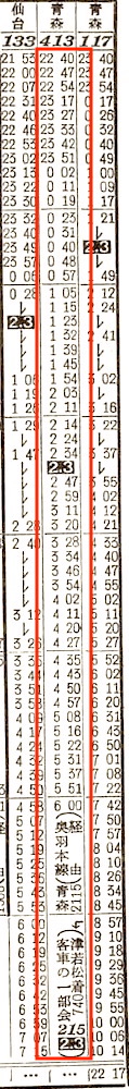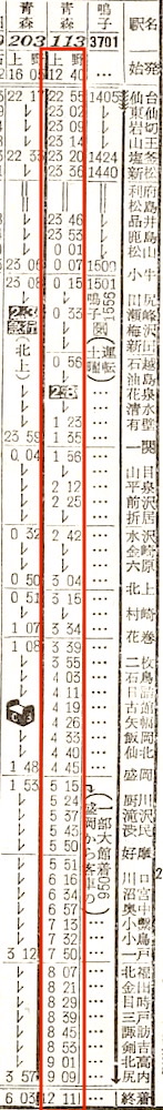 【夜行普通】113:上野1240-0445盛岡☆0515-1211青森【23時間31分】