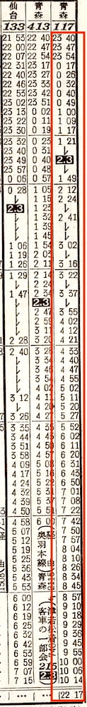 【夜行普通】117:上野2340-0527郡山☆0552-2217青森【22時間37分】