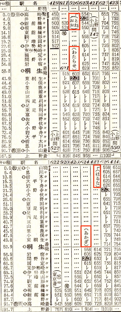 【準急白樺】307:上野1215-(高崎線)-1352高崎1357-(信越本線)-1727長野【5時間12分】