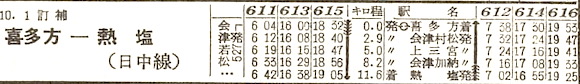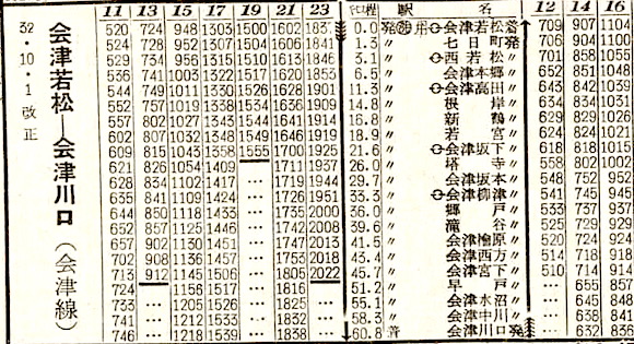 磐越西線の喜多方〜熱塩の日中線です。3往復の列車が設定されています。路線名は終点の熱塩駅の北にある日中温泉に由来します。1984年(昭和59年)4月1日に廃止となりました。