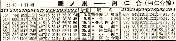 時刻表見聞録1958年11月