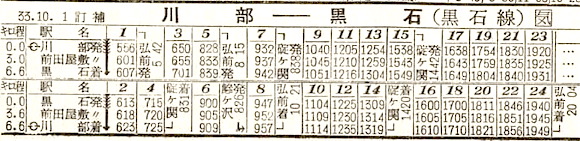 奥羽本線の川部〜黒石の黒石線です。12往復の列車が設定されています。1984年(昭和59年)11月1日に弘南鉄道の黒石線に転換されましたが、1998年(平成10年)4月1日に廃止となりました。