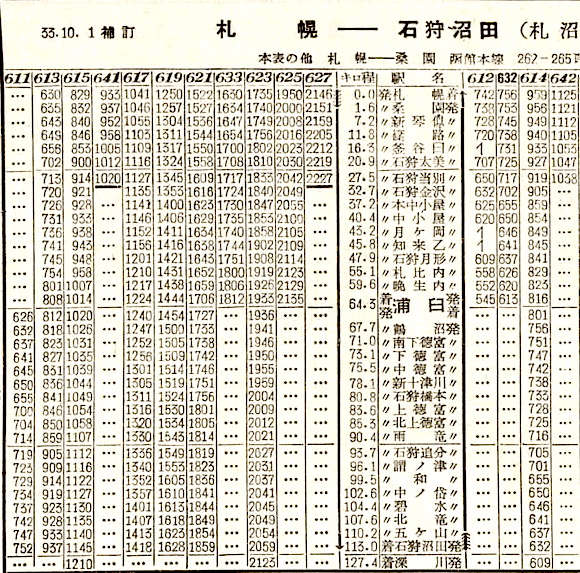 函館本線・桑園〜留萌本線・石狩沼田の札沼線です。6往復+区間列車も設定されています。しかし1972年6月19日に新十津川〜石狩沼田が廃止となり、2020年5月7日に北海道医療大学(石狩当別〜石狩金沢間に新設)〜新十津川が廃止となりました。