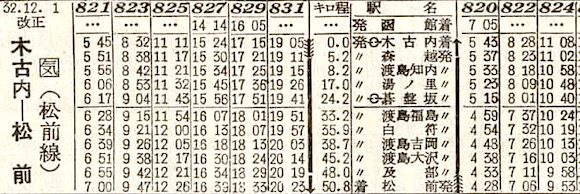江差線・木古内〜松前の松前線です。6往復の列車が設定されています。しかし1988年(昭和63年)2月1日に全線廃止となりました。